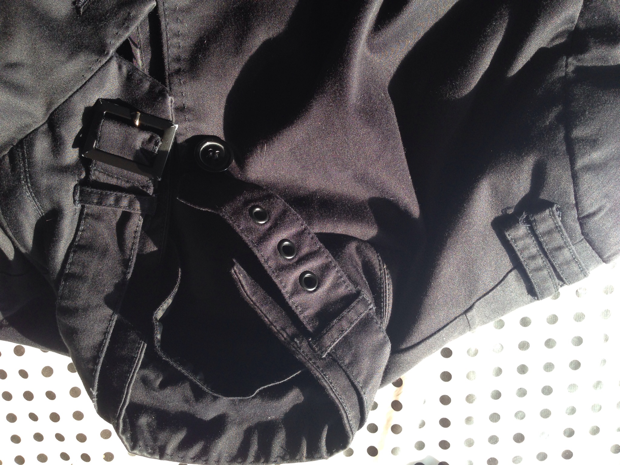 This is not a tailored blazer, it is a very thin layer basic jacket with some of the biker details giving it a modern edge. It features a black painted metal buckle and rivot points around the neck area, with a nod to some naval type epaulettes atop the shoulders. This is a stylish and modern feature jacket, that fits well on my curvier figure. I have had this one for a while, but it was from H&M and was a snip at £35, this is a 42R (which is generally the biggest size that H&M do)