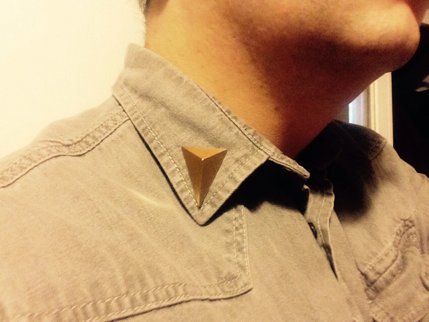 Next to my self named “Collar Pointies”! These golden accessories, are really clever little items that pin onto you clothing to make it look more unique. I like items like this because you really can change a basic item with very little effort. The are double pinned on the back and sit nicely on the collar, they also help weigh the collar down for a cleaner and sleeker line. These were £2 from ASOS (again in the sale) and I love them – they were also an excellent touch to last year’s Dracula outfit for Halloween!