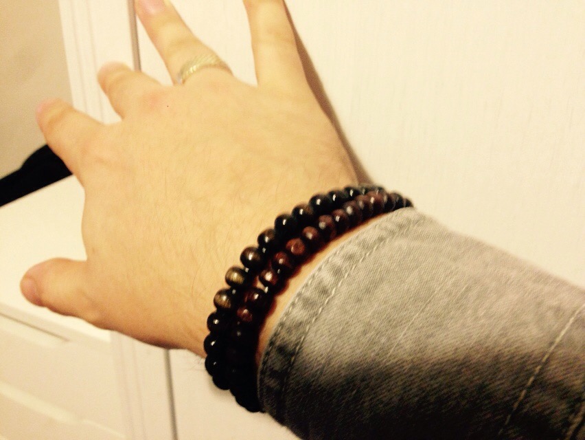 My wooden beaded bracelets are a hark back to the beach fashion I used to wear. These are varnished beads in different tones, and for me that is the the key. I think it’s important that the texture of the wood and the variation in the colours contributes to the outfit as a whole. The wood, though warmer in colour compliments the sturdy nature of the denim. Less is always more, so two or three on one wrist rather than 10, Gentlemen!!!!