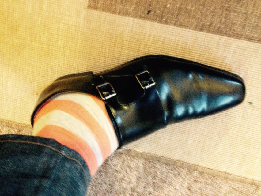 As previously featured, these are Lambretta double-monkstraps in a dull patent finish. (NOT check your reflection in it shiny!!)