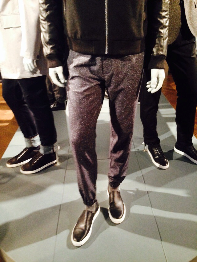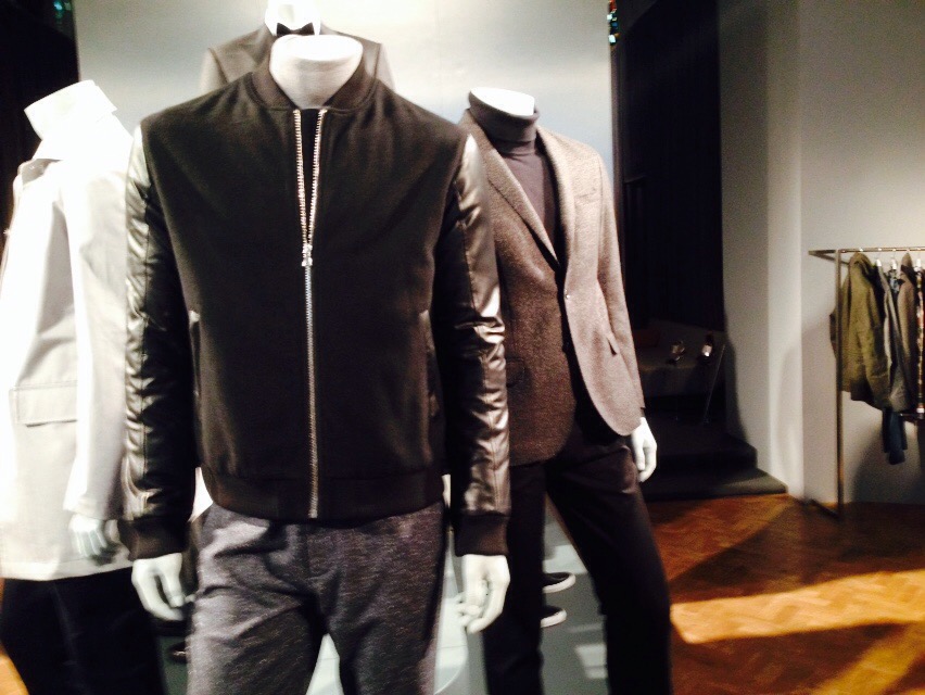 For me the star of the collection is this leather-sleeved bomber jacket that is contemporary and well cut. The shiny silver zip adds to its modernity and adds tho this substantial level of look in this piece.