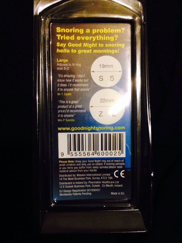 The packaging is very clear that for heavy snorers a ring is needed on each little finger and maybe that would further assist my problem. I really wanted this to be the full answer to the snoring debacle and I would say that this is definitely worth a try, to see if this makes a difference to your specific nighttime breathing issues.