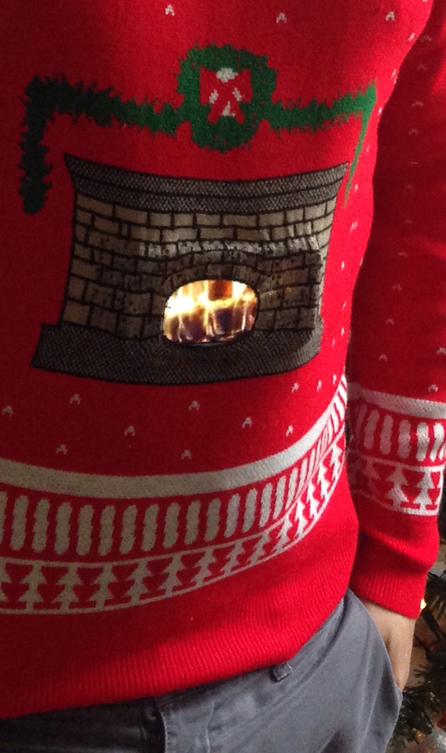 Morph Digital Dudz have a lot to offer by way of interactive clothing, and this fireplace design is no exception! The interactive part is provided by an app on your smartphone, and there are different options to suit all of the festive designs.