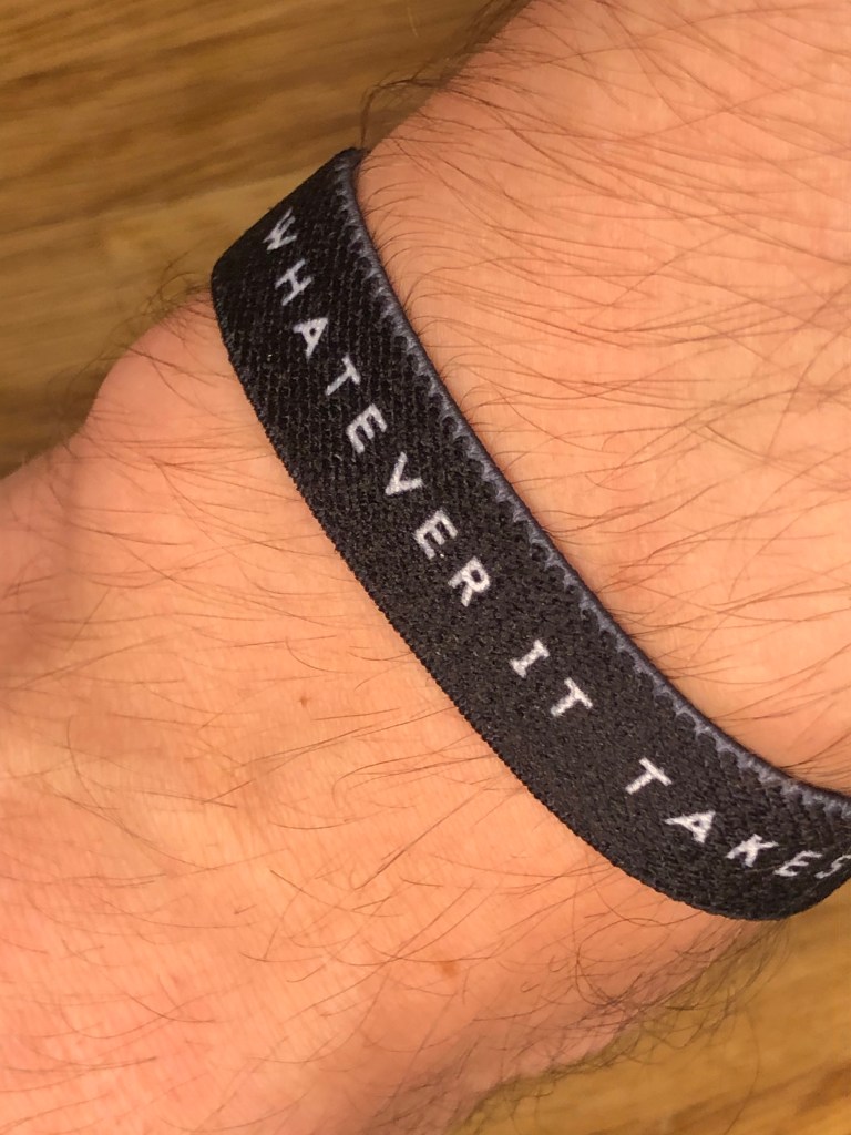 My band is a classic black and grey checkered design and reminds me to remember that “whatever it takes” is what I need to do. This message couldn’t be more relevant in these Covid times, where it’s easy to become unmotivated and, to be honest, a bit insular. I sometimes need to motivation to get me out of the house to exercise or to get the house cleaned instead of wasting time on social media or in front of tv re-runs.