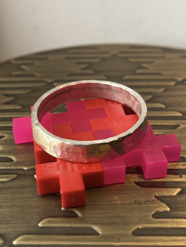 Through the session we were taught the skills to take a piece of silver “wire” through to a finished silver ring by way of – ring sizer, “Keith” the blow Torch, (thank you Keith) And the piece d’resistance the Disco Hammer! All of the above delivered with skill and personality but the proof was in the quality of the final product that I produced.